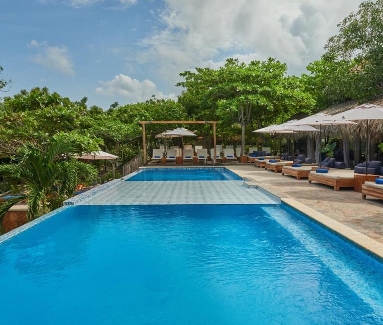 After the mud, it's time for magic—a themed pink pool party at the rooftop pool of the Hyatt Regency Cartagena. Slip into your cutest pink swimsuit or cover-up, grab a cocktail, and vibe out with music, games, photo ops, and that unbeatable Caribbean Sea backdrop. 💕🎶