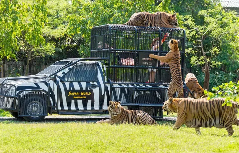 Safari World and Marine Park in Bangkok, Thailand, is a unique and popular tourist attraction that combines the excitement of a safari experience with entertaining animal shows and marine exhibits.