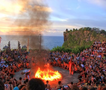 In the evening 6’O clock, if you wisely opt for the Kecak Dance Show - you will be treated with the famed Balinese dance show depicting scenes from the most popular Hindu epic – Ramayana. The name of the dance form is the Kecak dance. The Kecak dance style is celebrated for its artistic value and incredibly complex hand gestures. The Kecak Fire Dance, also known as the 'Monkey Dance' is the highlight of this performance. This outing at the Uluwatu temple blesses you with a perfect exhibition of all the attractive Balinese culture.