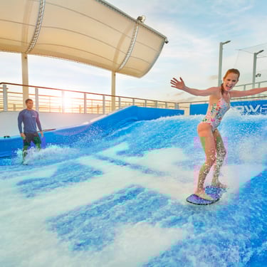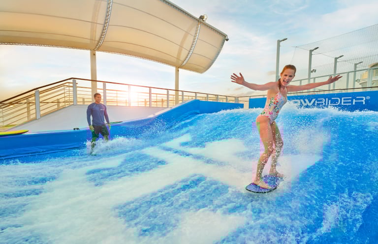 Start with a morning yoga class or a stroll along the deck as the sun rises over the open sea. Spend your afternoon lounging by one of the many pools, zip-lining across the ship, catching a Broadway-style show, or indulging in a cocktail and live music in the Royal Promenade.