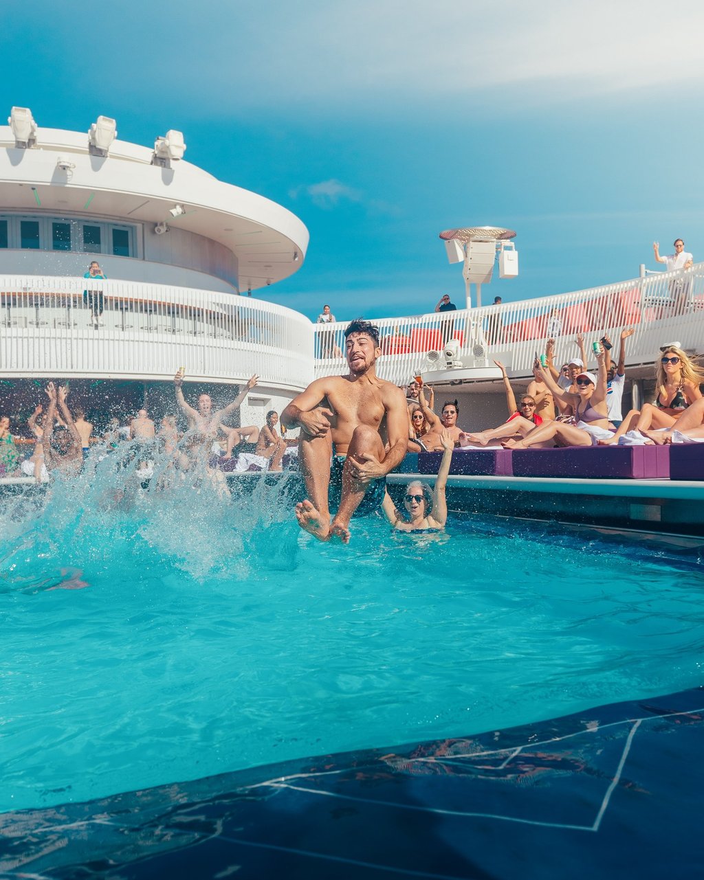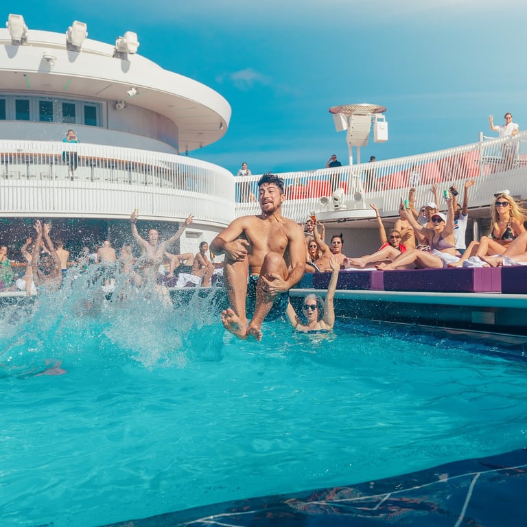 On this day, we arrive at Virgin Voyages' private beach resort located on the island of Bimini, Bahamas. Here we will find a beach club featuring a luxurious beach experience like no other. Indulge in VIP treatment with attentive service, including beachside food and drink service, plush towels, and optional cabana rentals for added privacy and comfort.
