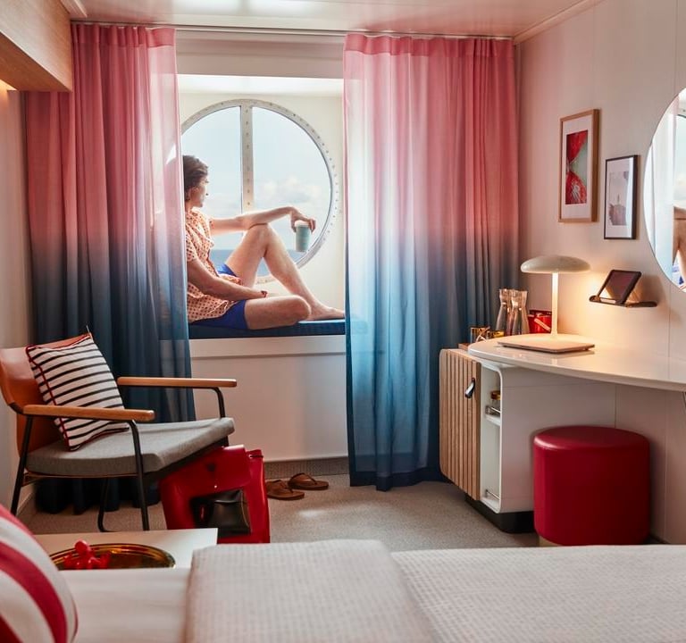 Sea View cabins are Virgin's standard oceanview cabins, offering a large round porthole window with stunning views of the ocean.